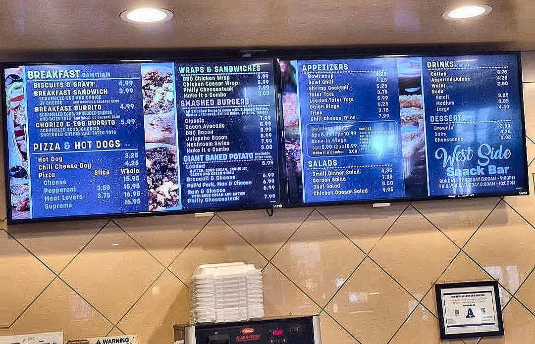 As of March, the West Side Snack Bar located in the Casino West area of the Riverside Resort has a new menu. A local favorite, Krispy Krunchy Chicken is no longer there, but they have many new items including Giant Baked Potatoes, Smashed Burgers, Pizza, and Several Breakfast Items. All at great prices too!