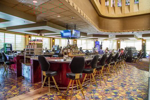 Casino West is located on the West side of Casino Drive across from the street from the Riverside Resort. It features a 10,000 sq. ft. casino with more than 180 slot and video poker machines, a full-service cocktail bar, and West Side Snack Bar. It is Easily accessible from the street, via the 560-space covered parking garage across, or via the pedestrian walkway from the 2nd floor of the Riverside’s North Tower.